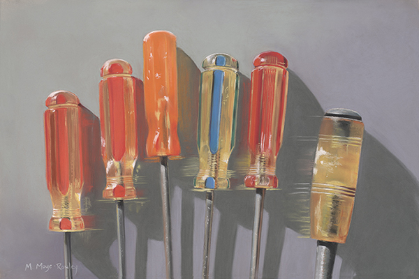 “Toolbox Favorites” pastel painting on sandpaper, 12 X 18″ Giclée print available. $150