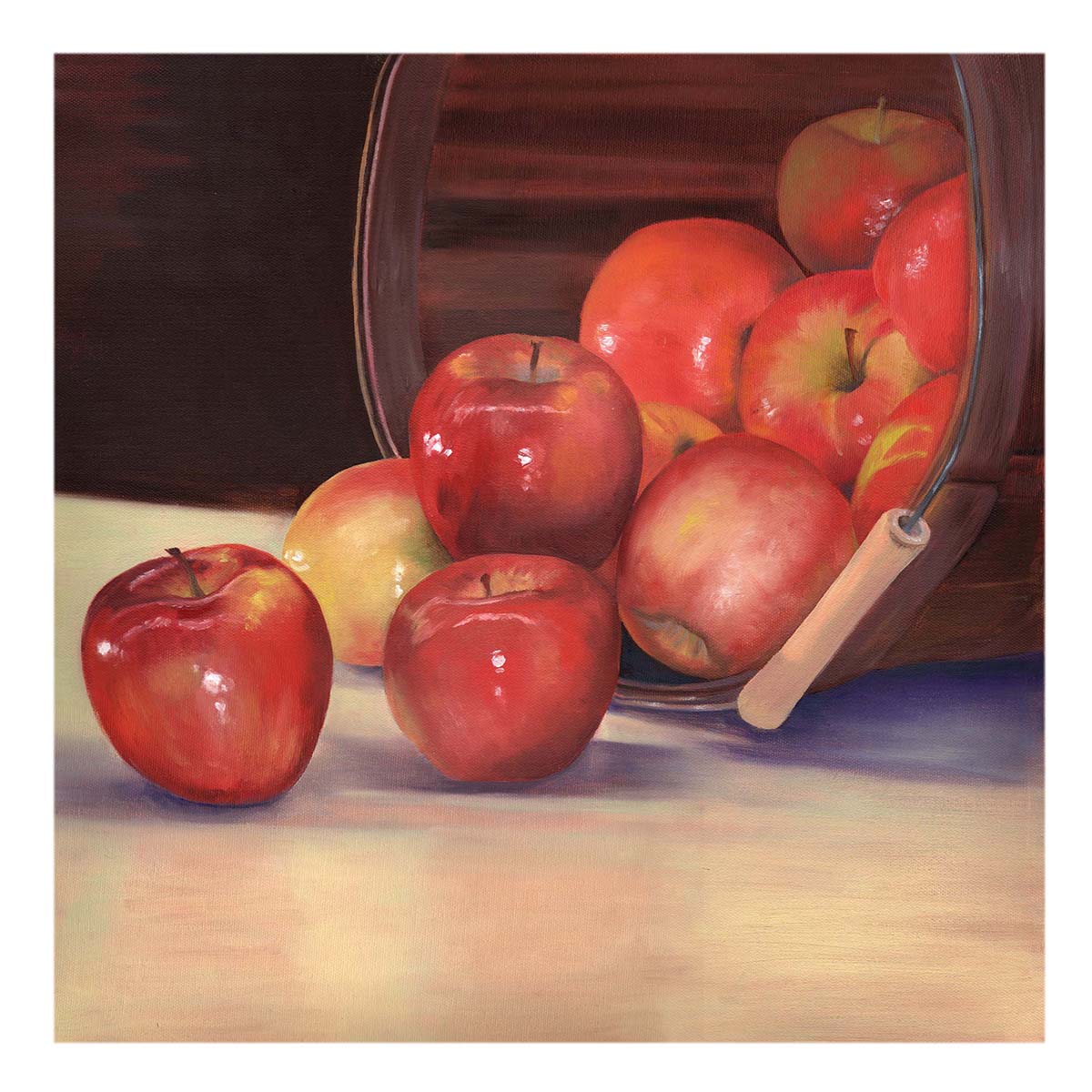“Apples” oil on canvas. 12 X 12″ Giclée print available $150 or 8 X 8″ $85.