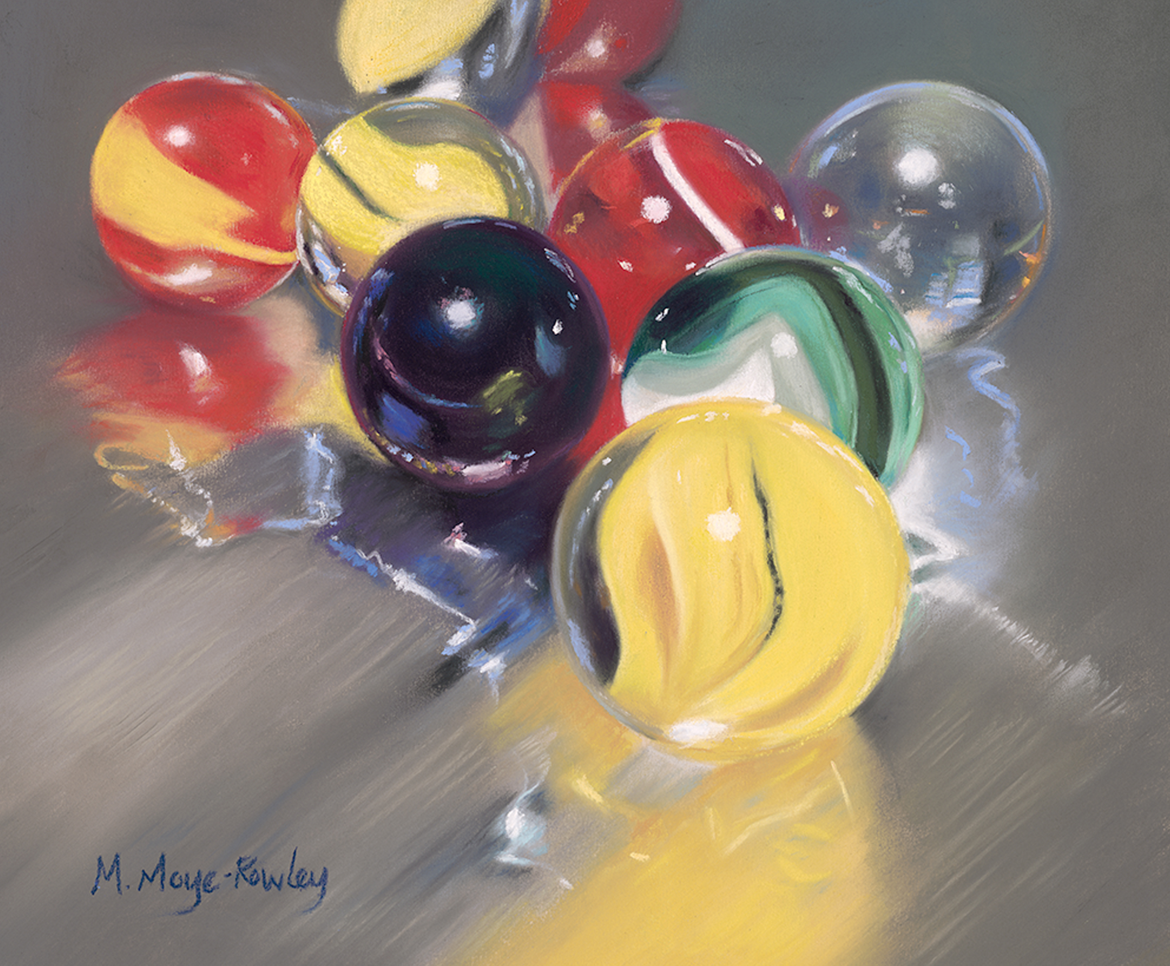“Harold’s Marbles”, pastel painting on sandpaper, 10 X 15″ Giclée print available. $150